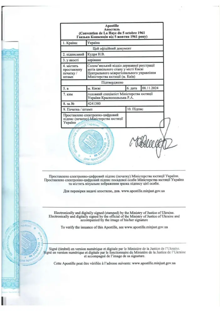 Поможем вам с получением дубликата свидетельства о рождении в Украине, а также с его переводом. Свидетельство о рождении является одним из важнейших документов, удостоверяющих факт рождения лица и содержащий основную информацию о нем. Потеря или повреждение этого документа может стать проблемой, ведь он часто нужен для различных юридических, образовательных и медицинских дел. В таком случае восстановление свидетельства о рождении становится необходимым, и важно знать, как получить его дубликат в Украине.