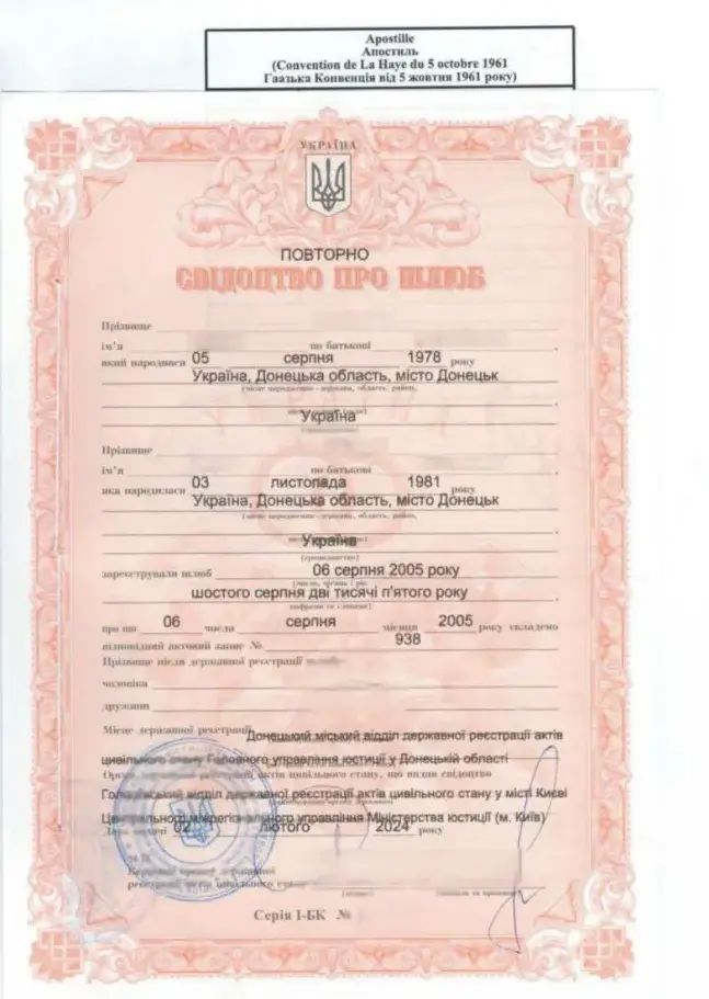 У разі, коли після розлучення один із подружжя змінив прізвище, повторне свідоцтво видається із зазначенням початкових даних на момент укладання шлюбу. Тобто, навіть якщо ви зараз маєте інше прізвище, у свідоцтві буде вказано те, яке діяло під час реєстрації шлюбу. Це важливо враховувати, якщо документ подається за кордон – у перекладі потрібно пояснювати зміну прізвища через додаткову довідку.