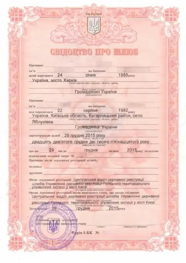 Як виглядає свідоцтво про шлюб